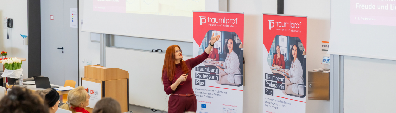 Ein weiterer Bestandteil des Programms ist ein einjähriges, qualifizierendes Begleitprogramm. In dessen Zentrum stehen u. a. der Kurs „Berufsbild Professorin an einer HAW oder DHBW“ und der Kurs „Hochschuldidaktik“, der gemeinsam mit der GHD veranstaltet wird. Alle Kurse stellen den interaktiven Austausch unter den Mentees und das Arbeiten in Gruppen in den Vordergrund.